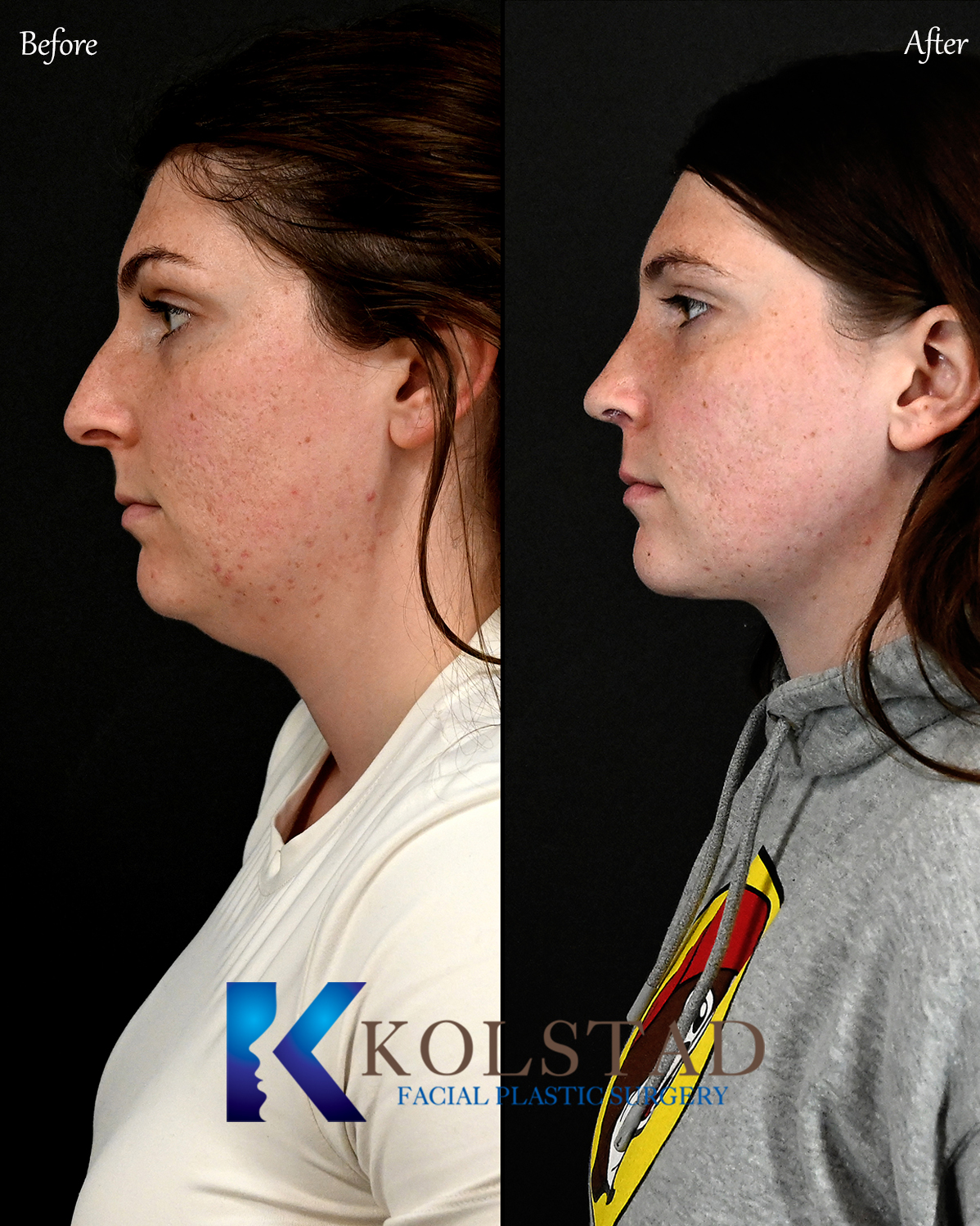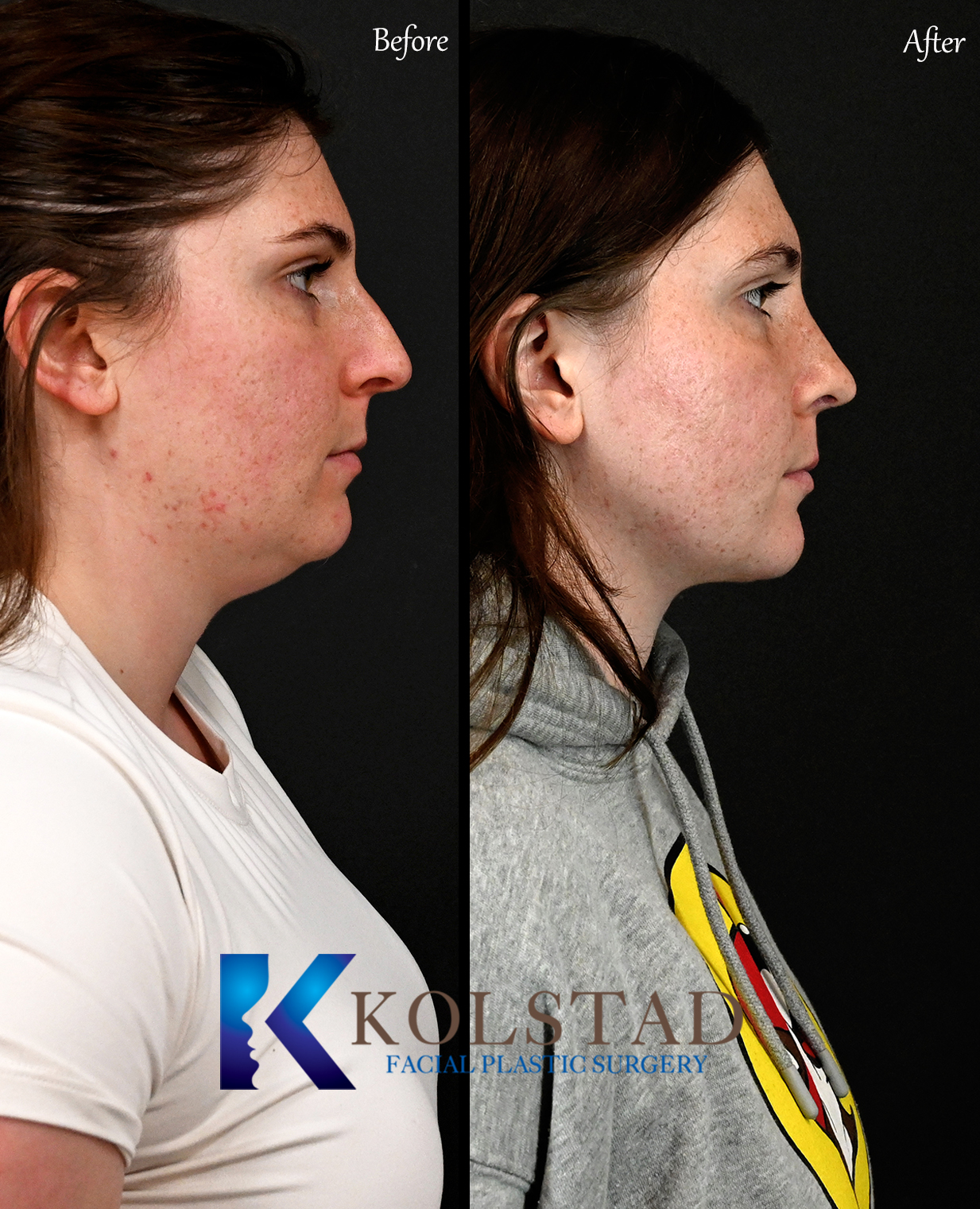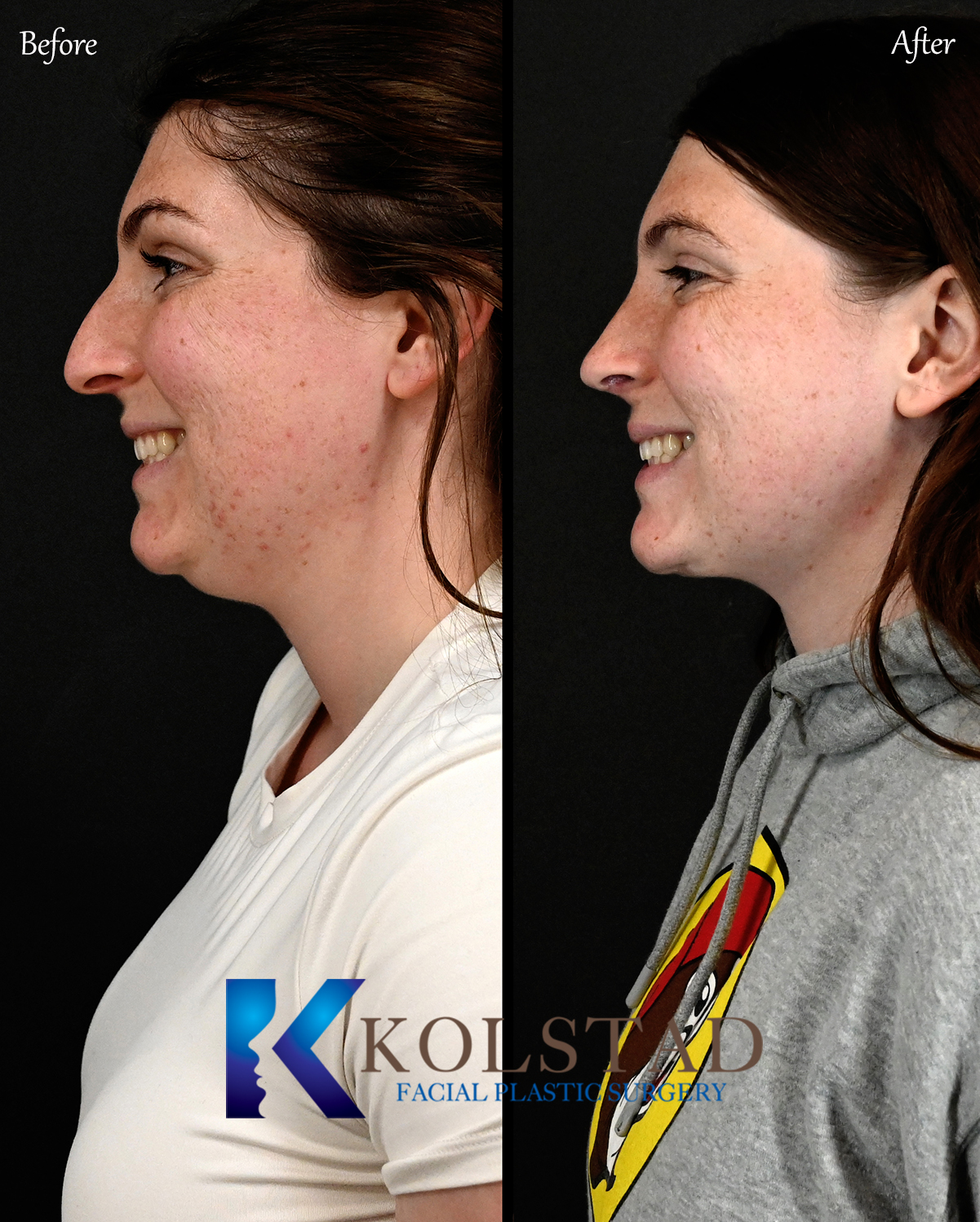 This complex rhinoplasty involved using multiple advanced techniques to achieve the optimal result. Dr. Kolstad refined the patients profile by combing nose and neck surgeries.